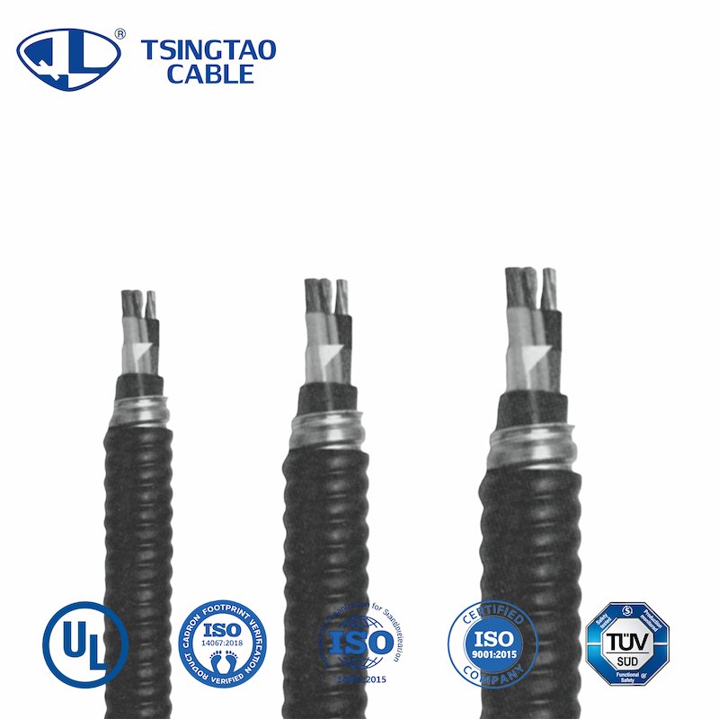 The conductors are insulated with cross-linked polyethylene (XLPE) and individually protected by an inner PVC jacket, an overall interlocked aluminum alloy armor, and an outer PVC jacket.